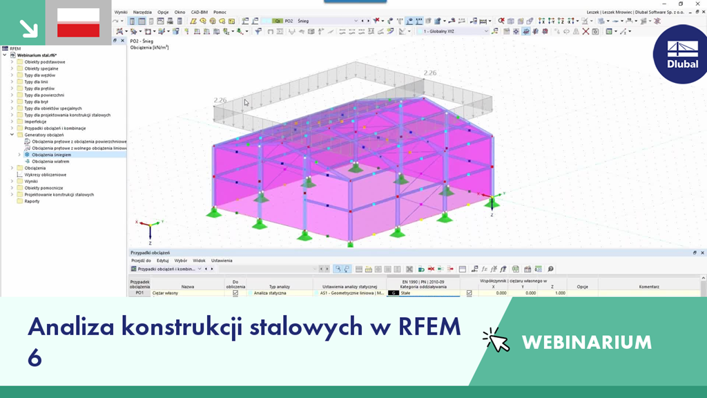 W webinarium prezentujemy możliwości modelowania i wymiarowania konstrukcji stalowych w programie RFEM 6.