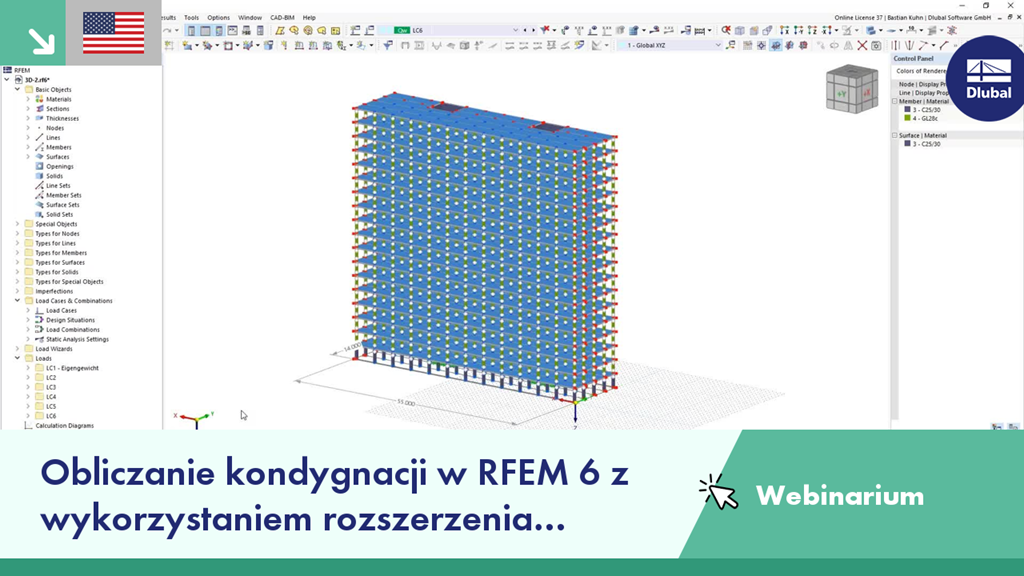 Chcesz mieć więcej niż jedną kondygnację w swoim budynku? W takim razie obejrzyj webinarium! Dowiesz się, jak projektować konstrukcje wielokondygnacyjne w programie RFEM 6 do analizy statyczno-wytrzymałościowej za pomocą modeli budynków.