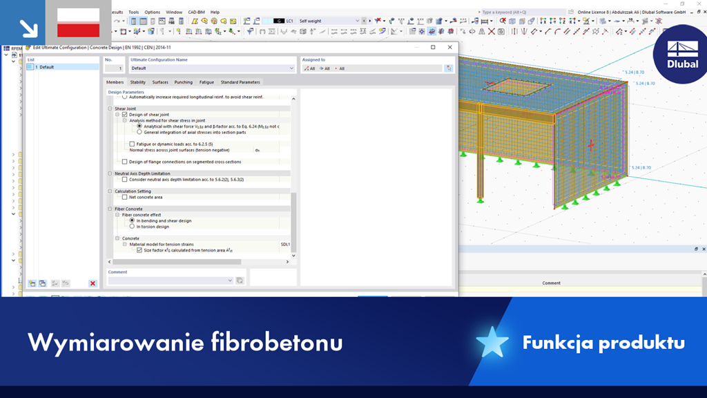 Ta opcja jest dostępna dla obliczeń zgodnie z EN 1992-1-1. Obliczenia zgodnie z wytyczną DAfStb są przeprowadzane po przypisaniu betonu typu "Fibrobeton" do zbrojonego elementu konstrukcyjnego. Wypróbuj teraz!