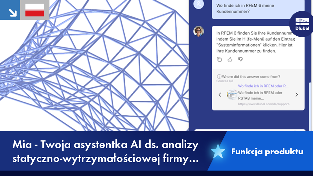 Mia to asystentka AI firmy Dlubal, dostępna nie tylko na stronie internetowej, ale także bezpośrednio w programach RFEM, RSTAB i RSECTION.