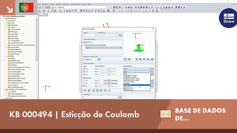 Uma vez que a resistência à força de corte entre dois elementos influencia o jogo de forças em todo o modelo, o RFEM e o RSTAB permitem um acoplamento de atrito estático para as definições de apoio, articulação e libertação. Esta abordagem simula o atrito utilizando um processo de cálculo iterativo automatizado que verifica as condições de atrito estático após cada iteração e aplica as medidas adequadas para manter o equilíbrio. A função foi dimensionada de tal forma que o utilizador especifica diretamente os graus de liberdade do acoplamento na direção em que a força de atrito é executada e a partir da direção em que a força de compressão vem.