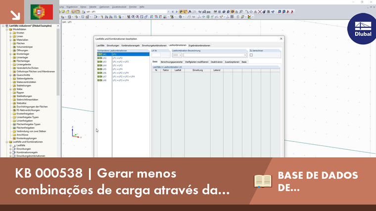 No RFEM 5 e no RSTAB 8, pode implementar este tipo de redução no menu "Editar casos e combinações de carga" no separador "Regras de combinação" com a opção "Reduzir número de casos de carga ...".