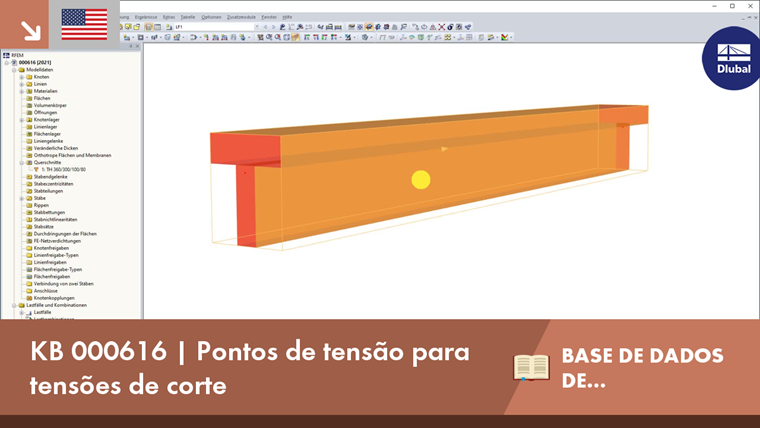 As tensões de corte das combinações de resultados disponíveis nos pontos de tensão gêmeos não podem ser combinadas linearmente. Portanto, os valores extremos de ambos os componentes são avaliados com as tensões de corte complementares correspondentes, a fim de determinar a maior tensão de corte total.