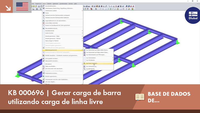 A carga da viga seria transferida como cargas concentradas na viga abaixo. Para evitar a divisão manual das partes correspondentes da carga, pode encontrar o gerador de carga "Da carga de linha livre" em "Ferramentas" → "Gerar cargas".