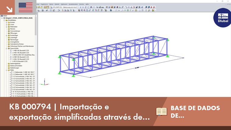 Nesta tabela, é possível definir facilmente as descrições do material e da secção para a importação e exportação. Pode selecionar as descrições internas da Dlubal de forma conveniente a partir da extensa biblioteca de materiais e secções. Se necessário, pode partilhar esta tabela de conversão com outros utilizadores do programa.