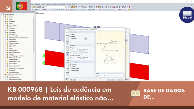 Devido a esta superfície de cedência, pode definir a relação tensão-deformação do diagrama na zona negativa como assimétrica. No entanto, a relação deve estar sempre dentro da área de superfície da regra de cedência. A imagem acima mostra a área da superfície para a regra de cedência de acordo com Drucker-Prager.