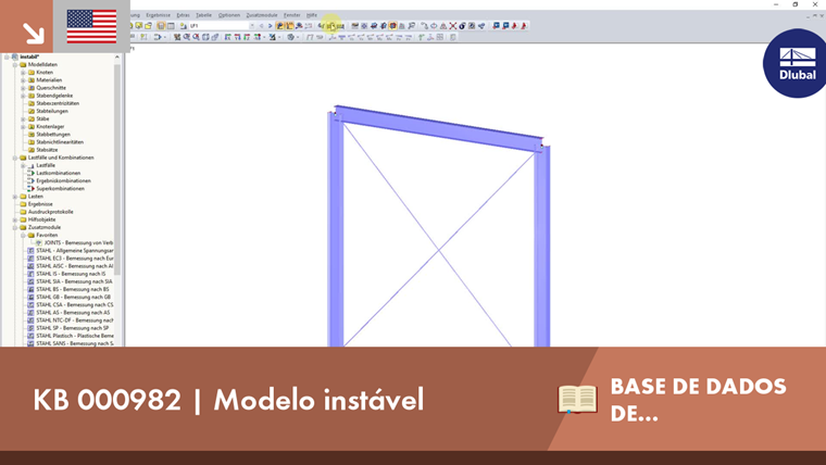 Wird trotz Beachtung der oben aufgeführten Punkte eine Instabilität ausgegeben, so liegt vermutlich eine fehlerhafte Modellierung vor. Es sollte dann unter "Extras" → "Modellkontrolle" überprüft werden, ob doppelte Knoten, überlappende Linien/Stäbe/Flächen oder kreuzende, nicht verbundene Linien/Stäbe vorhanden sind. Speziell bei importierten Systemen kommt es häufig vor, dass die Elemente aufgrund von Rundungsungenauigkeiten nicht verbunden sind. Auch die Randbedingungen wie Gelenke und Lager sollten kontrolliert werden.