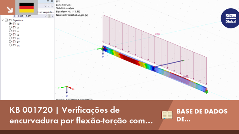 Ao ativar a opção "Executar análise de estabilidade" num caso de carga, a estrutura pode ser analisada quanto à estabilidade sob o carregamento do caso de carga. Além dos modos de rotura para a encurvadura por flexão, a análise de valores próprios considerando o sétimo grau de liberdade também pode detetar os modos de rotura da encurvadura por torção e da encurvadura por flexão-torção e calcular o fator de carga crítica. A forma própria e os fatores de carga críticos podem ser apresentados nos resultados da análise de estabilidade.