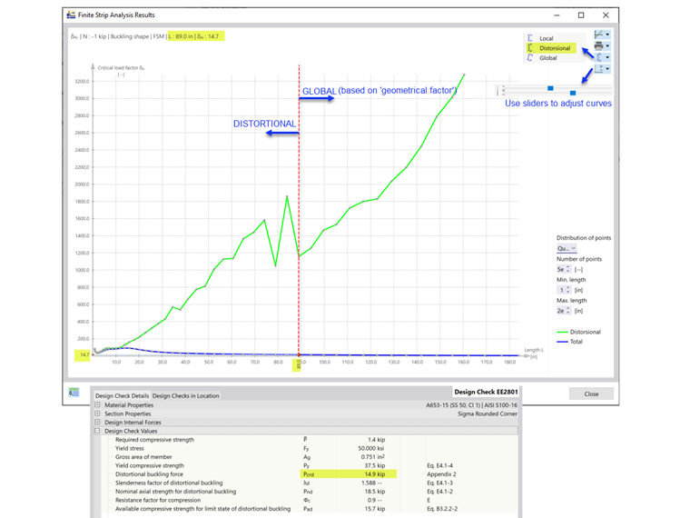 The individual curves (local, distortional, global) can be displayed separately from the drop-down menu (Image 05). For custom sections, it could take some time to load the individual graph.