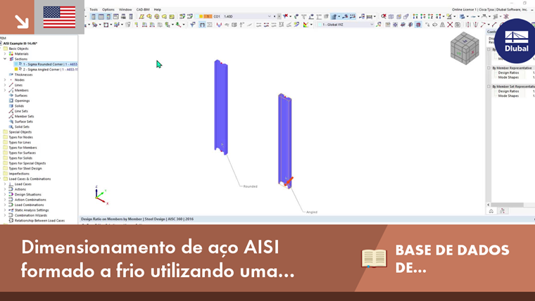 O exemplo III-14 do manual da AISI {%>#Refer [1]]] é utilizado para comparar os resultados obtidos a partir do modelo RFEM. Since the cross-section does not match any of the Thin-Walled sections, RSECTION is utilized to create the custom sigma section. A webinar showing how to create a custom shape in RSECTION is provided at the bottom of this article.