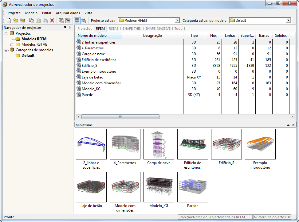 O administrador de projectos com capacidade de rede controla os projectos de todas as aplicações Dlubal Software num local central. Ele organiza os projetos de diferentes versões do RSTAB e do RFEM assim como do SHAPE-THIN, SHAPE-MASSIVE e RX-TIMBER numa posição comum. Antes do arquivamento, os resultados podem ser eliminados no administrador de projetos, sem necessidade de abrir o ficheiro.