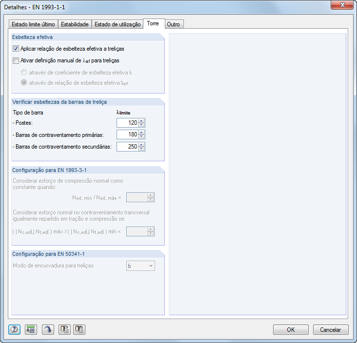 Para a verificação da encurvadura por flexão, não é necessária a introdução do grau de esbelteza nem da carga de encurvadura crítica elástica do caso de encurvadura determinante O módulo calcula automaticamente todos os coeficientes necessários para o valor de cálculo da resistência à flexão. O momento crítico ideal para encurvadura lateral por flexão-torção é determinado pelo programa para cada barra em cada posição x da secção.