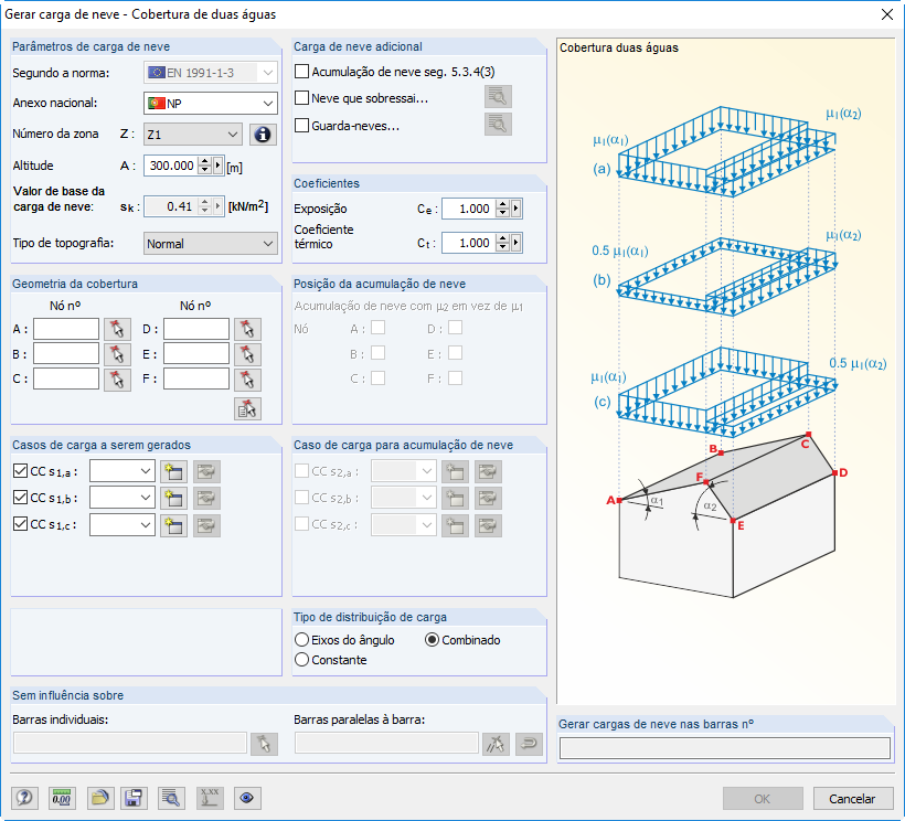 As cargas de neve em coberturas de uma e duas águas podem ser criadas como cargas de barra.