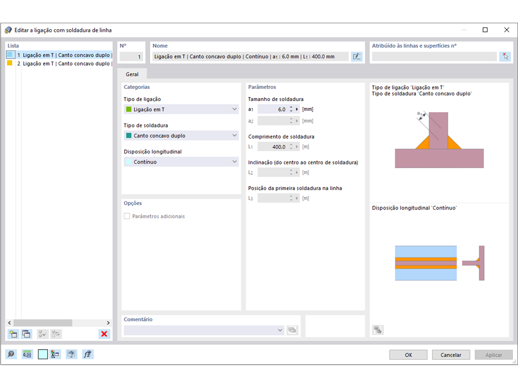Dependendo do tipo de conexão escolhido, as seguintes execuções de solda podem ser selecionadas: