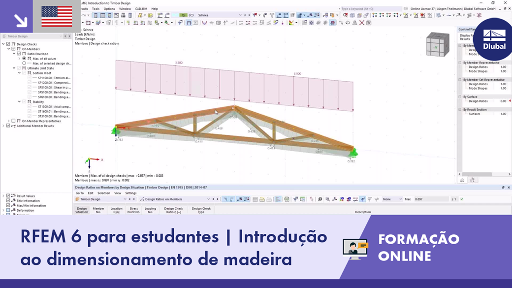 Formação online gratuita sobre o software de cálculo estrutural de elementos finitos RFEM 6 | Introdução ao dimensionamento de madeira para estudantes