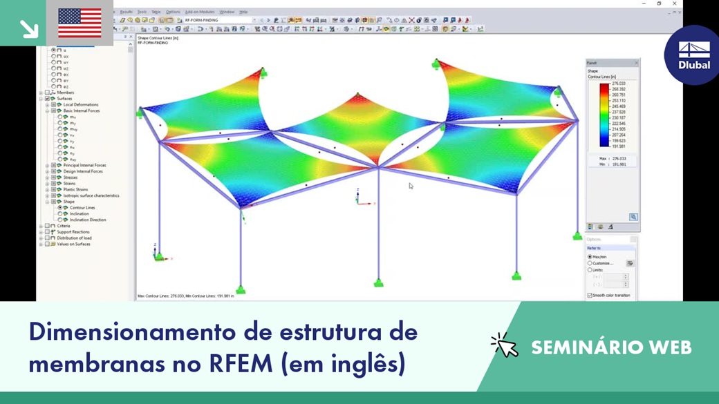 Dimensionamento de estrutura de membranas no RFEM (em inglês)