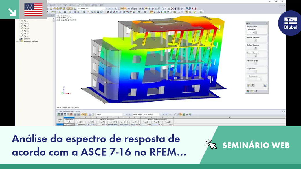Análise do espectro de resposta de acordo com a ASCE 7-16 nas cargas equivalentes do RF-DYNAM PRO