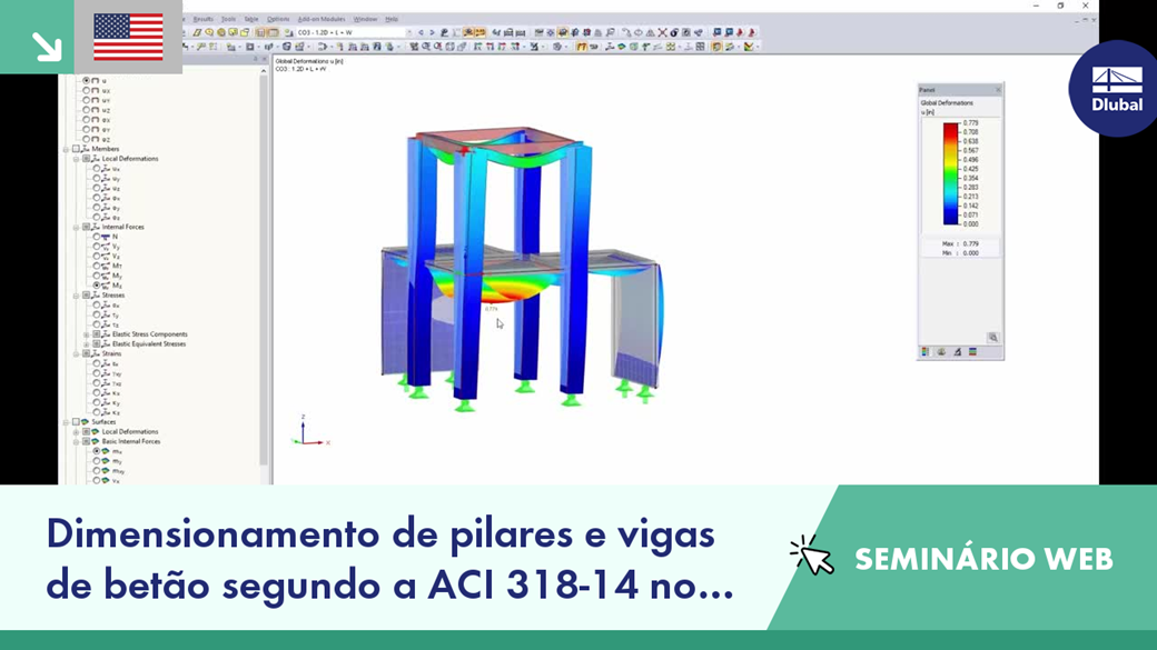 Dimensionamento de pilares e vigas de betão no RFEM de acordo com a ACI 318-14