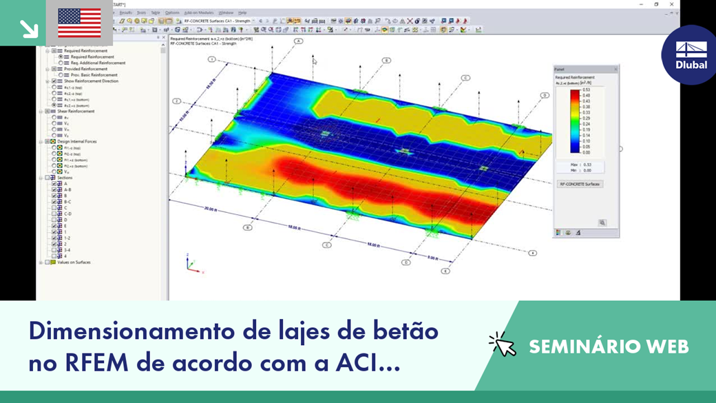 Dimensionamento de lajes de betão no RFEM de acordo com a ACI 318-14