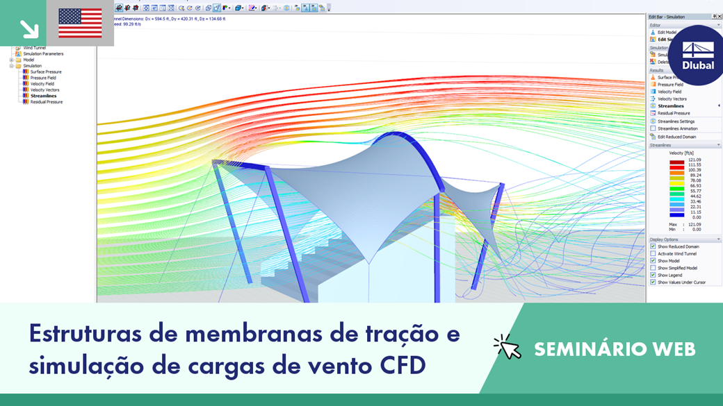 Seminário web | Estruturas de membranas de tração e simulação de cargas de vento CFD