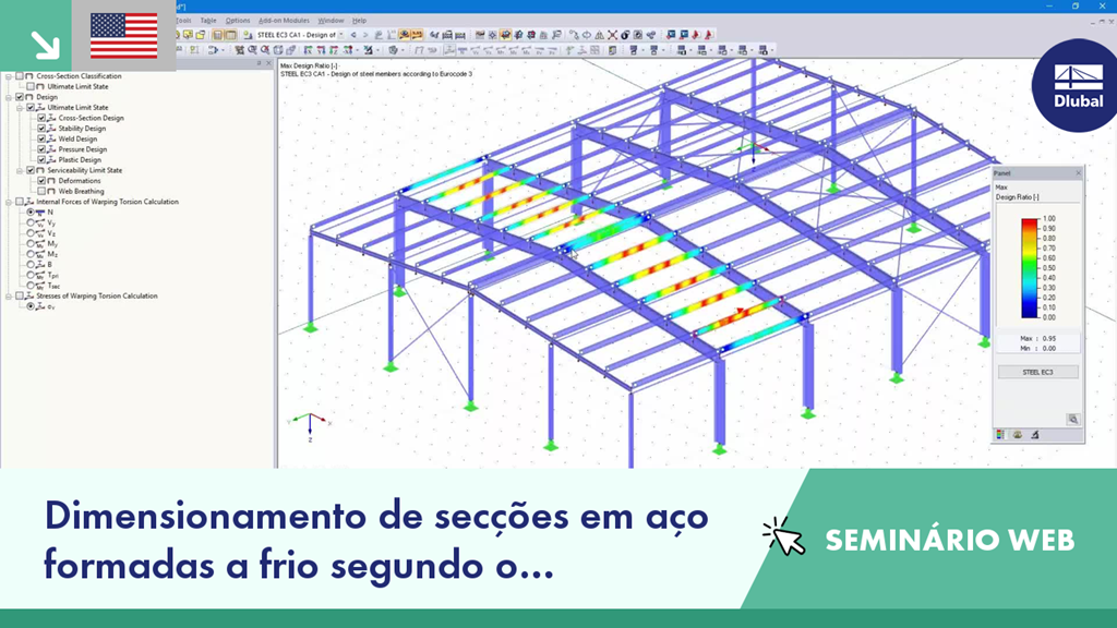 Neste seminário web é demonstrado como dimensionar secções de aço formadas a frio de acordo com as normas EN 1993-1-3 e EN 1993-1-5 nos programas RFEM, RSTAB e SHAPE-THIN 9.