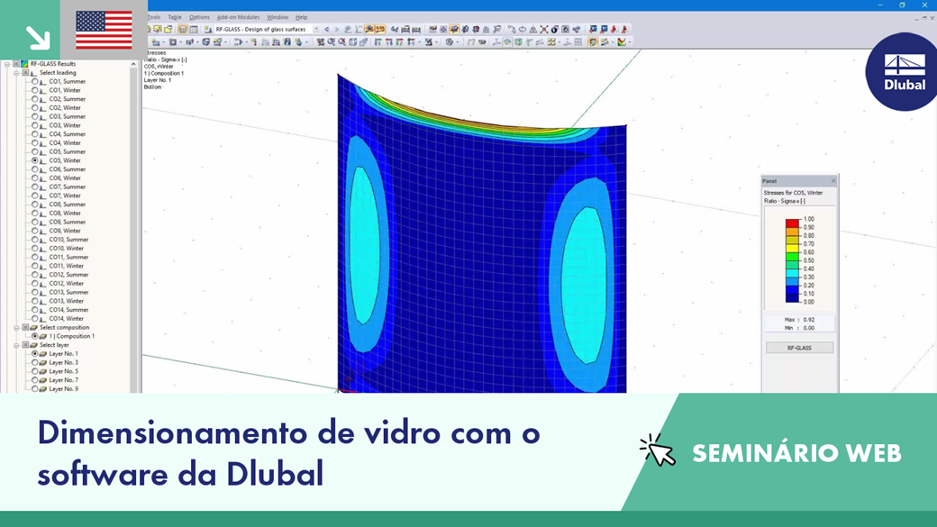 Este seminário web mostra o dimensionamento de painéis de vidro isolante e de vidro laminado com o software de cálculo estrutural da Dlubal.