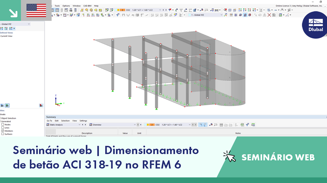 Seminário web gratuito | Dimensionamento de betão segundo a ACI 318-19 no RFEM 6 (EUA)