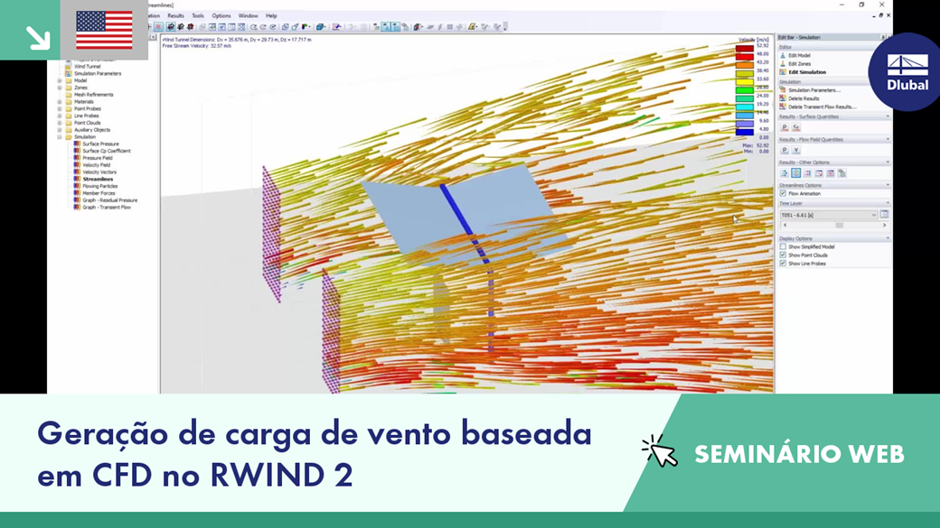 Simulação de vento no túnel de vento digital no RWIND 2