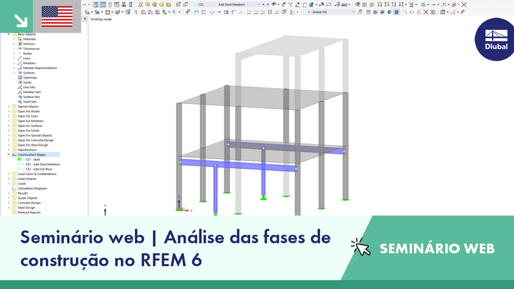 Seminário web gratuito | Análise das fases de construção no RFEM 6 (EUA)