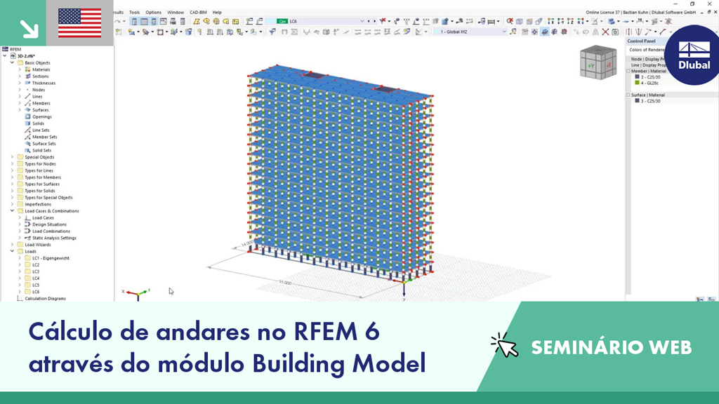 Cálculo de pisos no RFEM 6 com o módulo Modelo do edifício