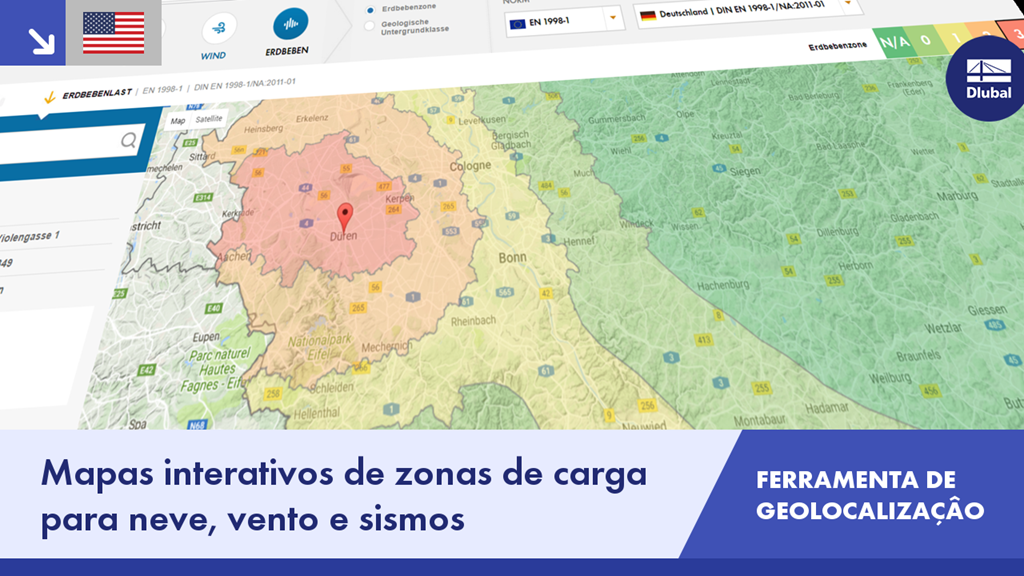 A ferramenta de geolocalização na página Zonas de carga de vento, neve e sismos contém mapas para a determinação rápida de zonas de carga de neve, carga de vento e sismos de Portugal e o Brasil entre muitos outros, de acordo com as diferentes normas internacionais.