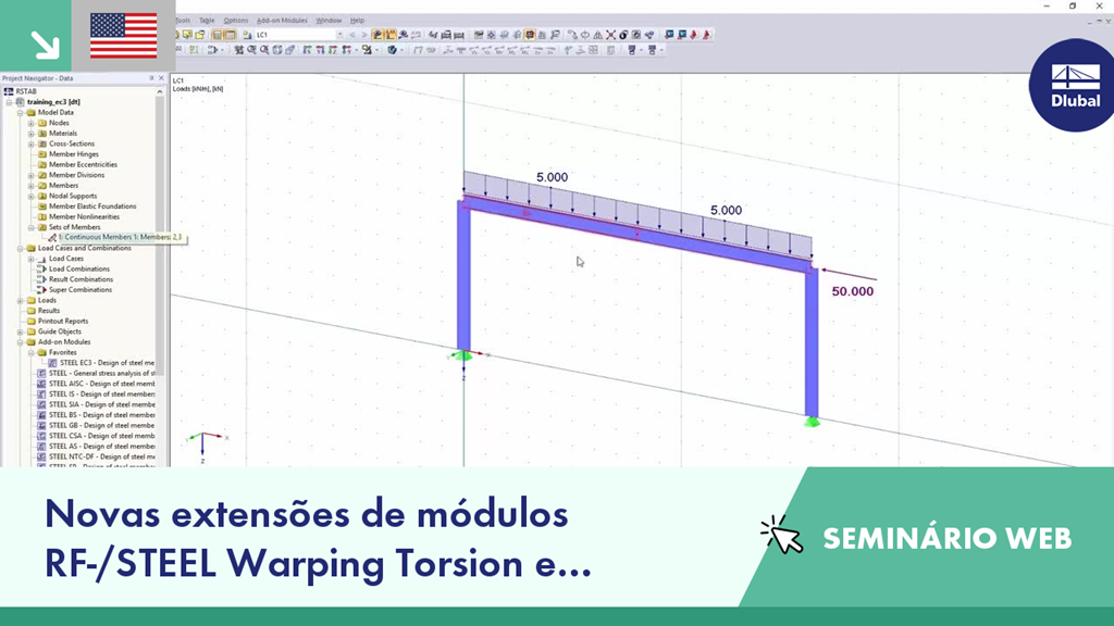 - Verificação de estabilidade segundo a EN 1993-1-1 utilizando as novas extensões de módulos RF-/STEEL Warping Torsion e RF-/STEEL Plasticity