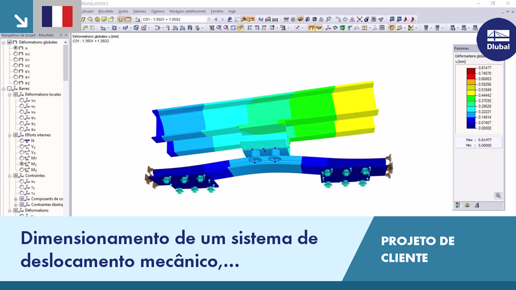 O objetivo deste projeto para uma central hidroelétrica foi o de analisar a resistência de um sistema de deslocamento mecânico duplo sobre carris quando sujeito a tração.