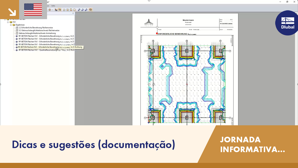 Na quarta parte da gravação da Jornada informativa Dlubal online, Paul Kieloch apresenta a documentação gráfica dos resultados do RF-CONCRETE Surfaces utilizando o exemplo de uma laje de piso.