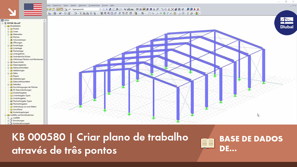 No RFEM 5 e no RSTAB 8, agora é possível criar um plano de trabalho através de uma seleção simples de três pontos. Já não é necessário criar um sistema de coordenadas definido pelo utilizador.