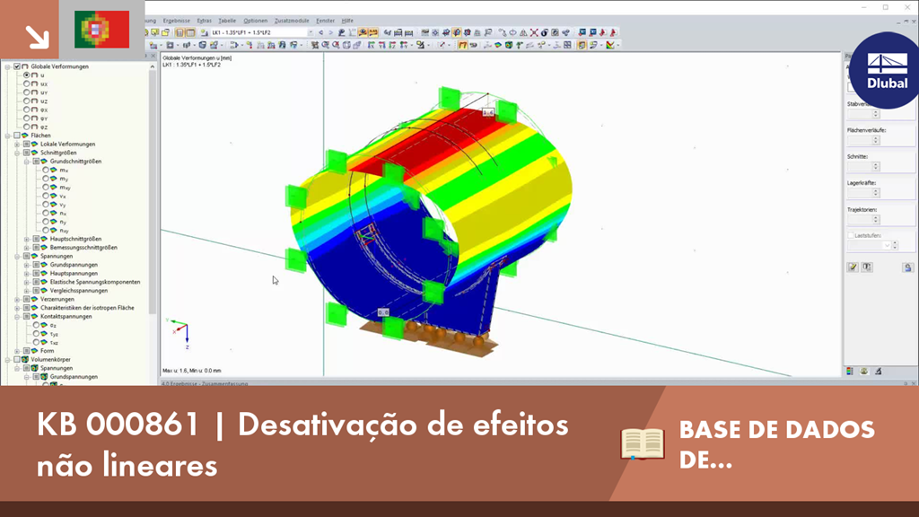 Se forem utilizados efeitos não lineares no modelo – tais como apoios em rotura, fundações, não linearidades de barra ou sólidos de contacto –, é possível desativá-los nos parâmetros de cálculo globais.