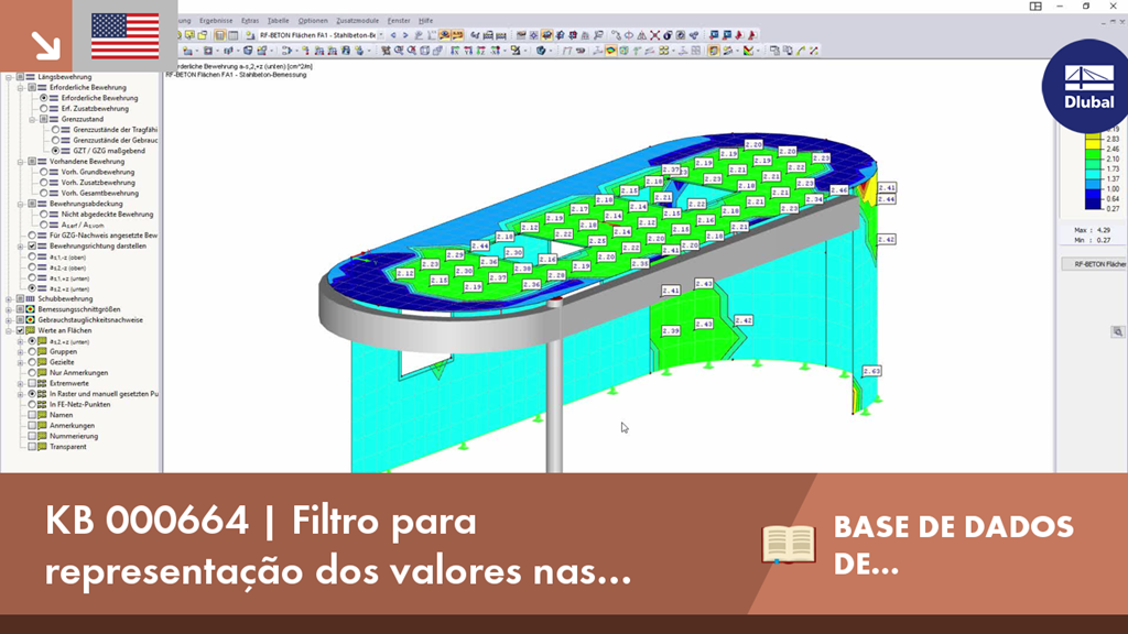 Em muitos casos, é necessário filtrar os resultados para a visualização dos valores nas superfícies de forma a não mostrar todos os números. Ao apresentar a disposição da armadura, pode, por exemplo, ocultar valores que se encontram abaixo da armadura básica já utilizada.