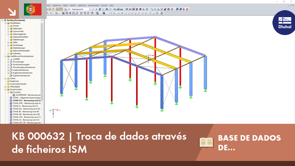 O ficheiro ISM (ISM = Integração da Modelação Estrutural) no RFEM e no RSTAB é uma possibilidade interessante para a troca de dados. Se exportar um modelo para este formato de dados, pode visualizá-lo e analisá-lo com o visualizador ISM gratuito da Bentley.
