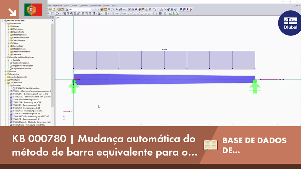 Para a verificação de estabilidade de barras e conjuntos de barras com uma secção uniforme, pode utilizar o método de barra equivalente segundo os capítulos 6.3.1 a 6.3.3 da norma EN 1993-1-1. No entanto, assim que uma secção variável estiver disponível, este método já não pode ser utilizado ou apenas de forma limitada. O módulo adicional RF-/STEEL EC3 consegue reconhecer automaticamente esses casos e mudar para o método geral.