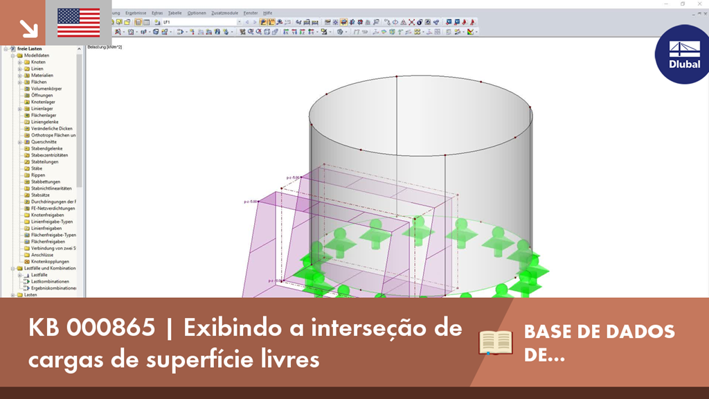 No RFEM, muitas vezes é necessário carregar apenas uma parte da superfície e não toda a superfície. Um caso típico é a pressão do solo. Para este efeito, existe a opção de definir cargas de superfície livres. Elas são independentes da superfície e são exibidas em dimensões de coordenadas definidas no gráfico.