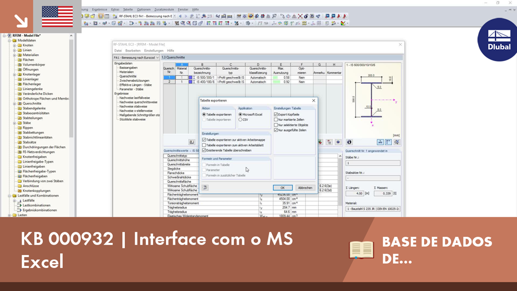No RF-/STEEL EC3, é possível otimizar uma secção automaticamente no dimensionamento. Para isso, selecione a secção correspondente na Tabela 1.3 ou defina parâmetros variáveis para uma secção soldada.