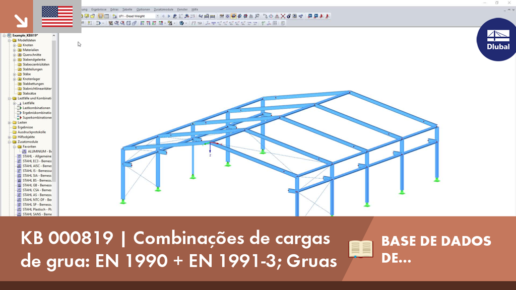 A criação automática de combinações no RFEM e no RSTAB com a opção "EN 1990 + EN 1991‑3; Gruas" permite dimensionar vigas de ponte rolante, bem como cargas de apoio no resto da estrutura.