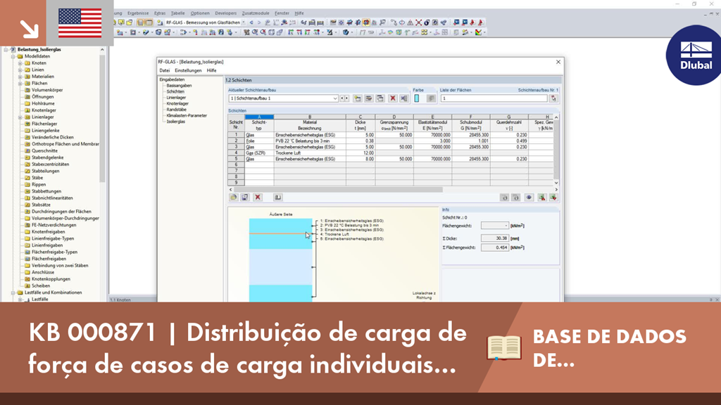 KB 000871 | Distribuição de carga de força de casos de carga individuais em diferentes camadas de vidro isolante