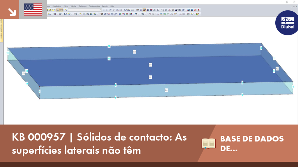 No RFEM, é possível visualizar as propriedades de contacto entre duas superfícies através de sólidos de contacto. Ao modelar sólidos de contacto, deve ter -se em atenção que cada superfície lateral de ligação entre as superfícies de contacto deve ser modelada como uma superfície simples com quatro linhas de fronteira.