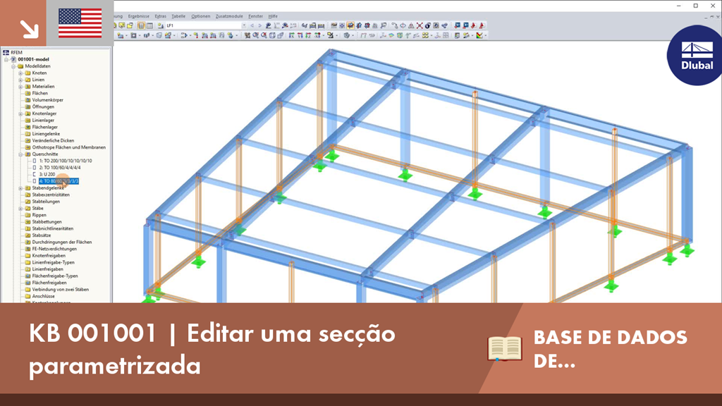 Se definir uma secção paramétrica na biblioteca através das suas dimensões, as propriedades geométricas são codificadas na descrição da secção, por exemplo "TO 200/100/10/10/10/10". Para alterar as dimensões, pode ajustar diretamente os parâmetros na descrição da secção.
