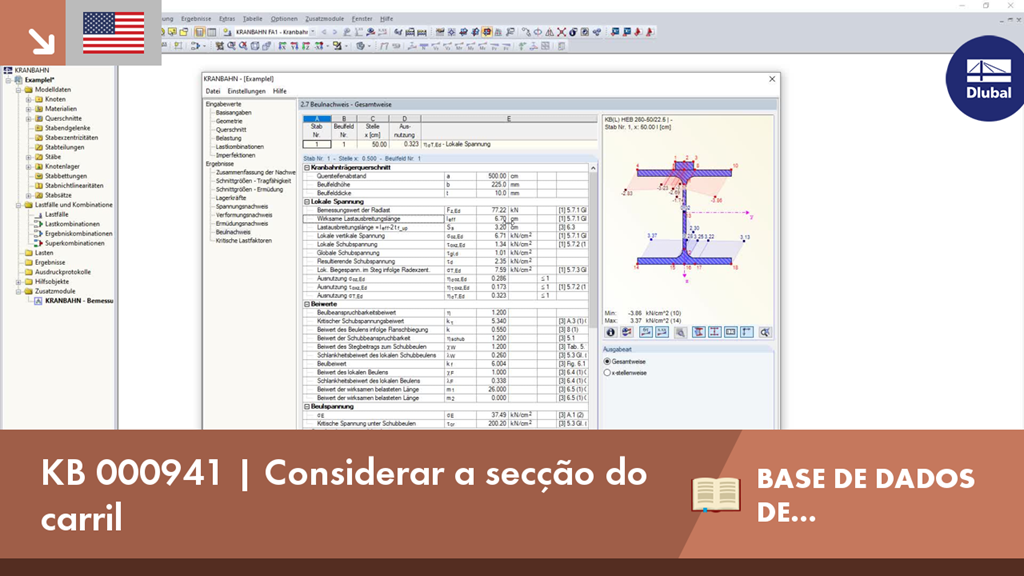 No CRANEWAY, a ação de um carril como "estaticamente eficaz" ou "estaticamente ineficaz" é definida em "Ligação carril -banzo" na caixa de diálogo Detalhes. Esta configuração controla o cálculo do comprimento de introdução de carga de acordo com a norma EN 1993-6, separador. 5.1.
