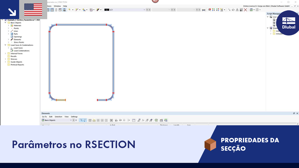 Apresentação das funções básicas do programa RSECTION. Vídeo curto sobre o ajuste dos parâmetros no programa RSECTION