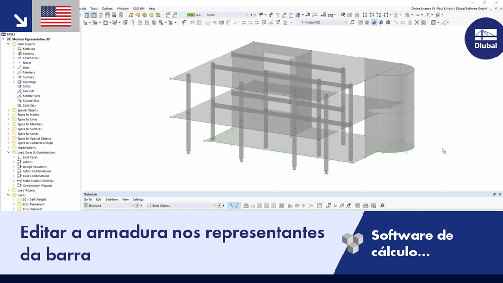Tendo vários pilares idênticos numa estrutura, não é necessário definir a armadura para cada pilar individualmente. Para isso, é possível ativar as representantes de barras e depois efetuar a definição da armadura na representante da barra para esse pilar.