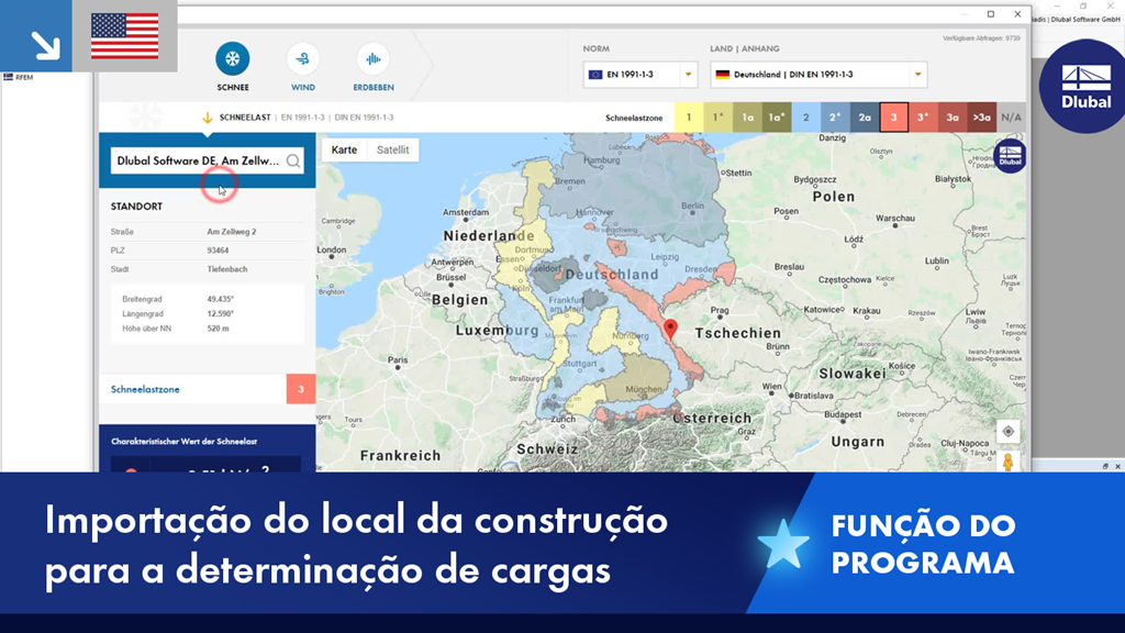 O local da construção pode ser especificado num mapa digital. Além dos dados do endereço (incluindo altitude), são importados automaticamente o mapa de carga de neve, a velocidade de vento e a carga sísmica. Estes dados, por sua vez, são utilizados pelos assistentes de carga.