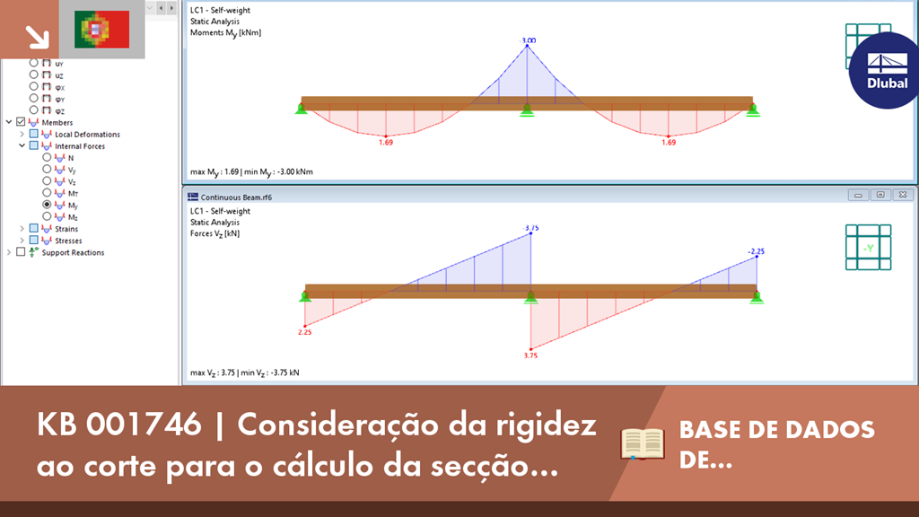 Este vídeo mostra as forças internas e os deslocamentos de uma viga contínua calculados com e sem consideração da resistência ao corte.
